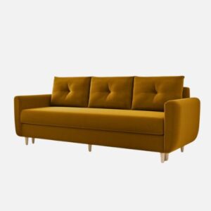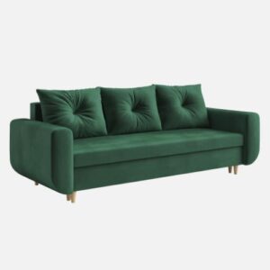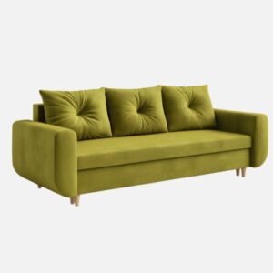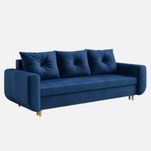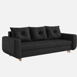 W zestawie znajdziesz trzy duże, pikowane poduszki oraz pojemny schowek na pościel. Wzmocniony stelaż z litego drewna gwarantuje trwałość i stabilność całej konstrukcji. Co więcej, montaż kanapy jest szybki i bezproblemowy – zajmuje zaledwie kilka minut!