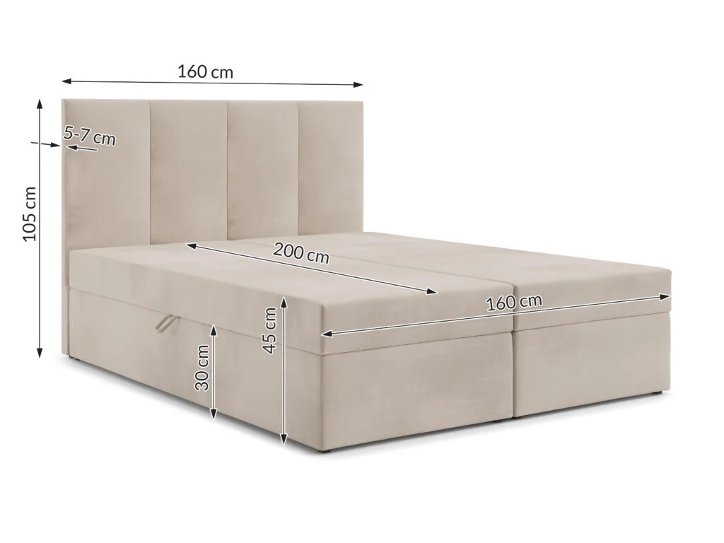 - Pojemnik na pościel dwukomorowy – otwierany z dwóch stron (lewej i prawej), zapewnia dużo miejsca do przechowywania oraz wygodny dostęp.