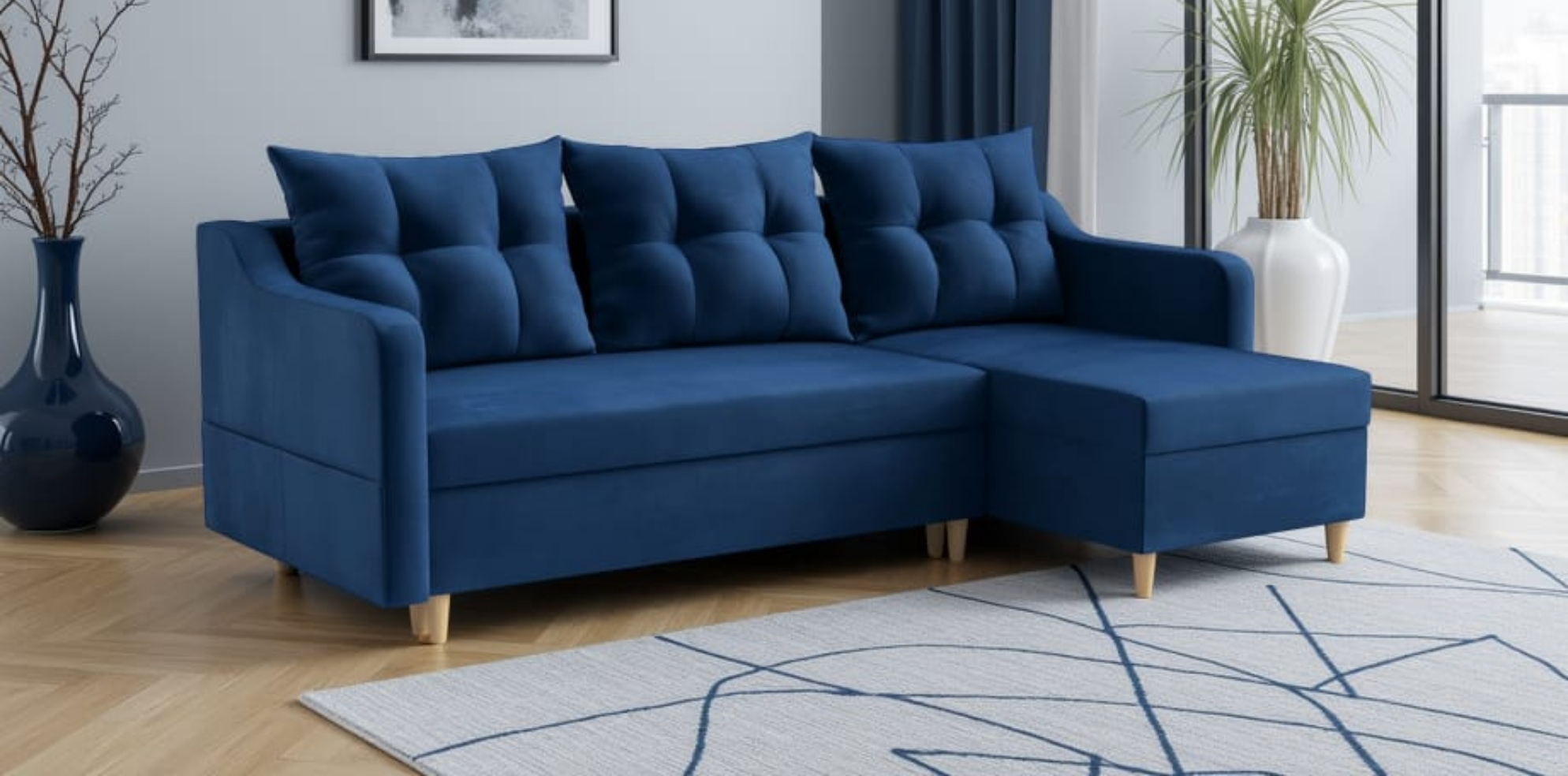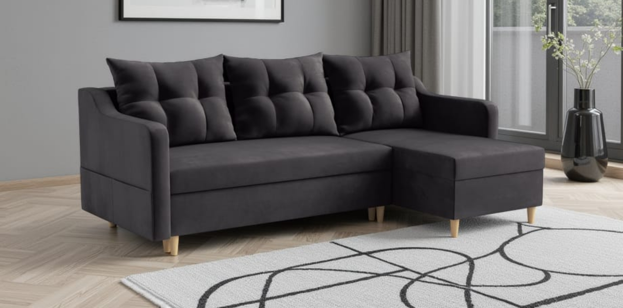 Narożnik BIANO posiada funkcję spania oraz pojemny schowek na pościel, co czyni go idealnym rozwiązaniem do mieszkań, w których przestrzeń musi być maksymalnie wykorzystana. To również mebel wolnostojący, z tyłem wykończonym tkaniną – świetnie prezentuje się z każdej strony.
