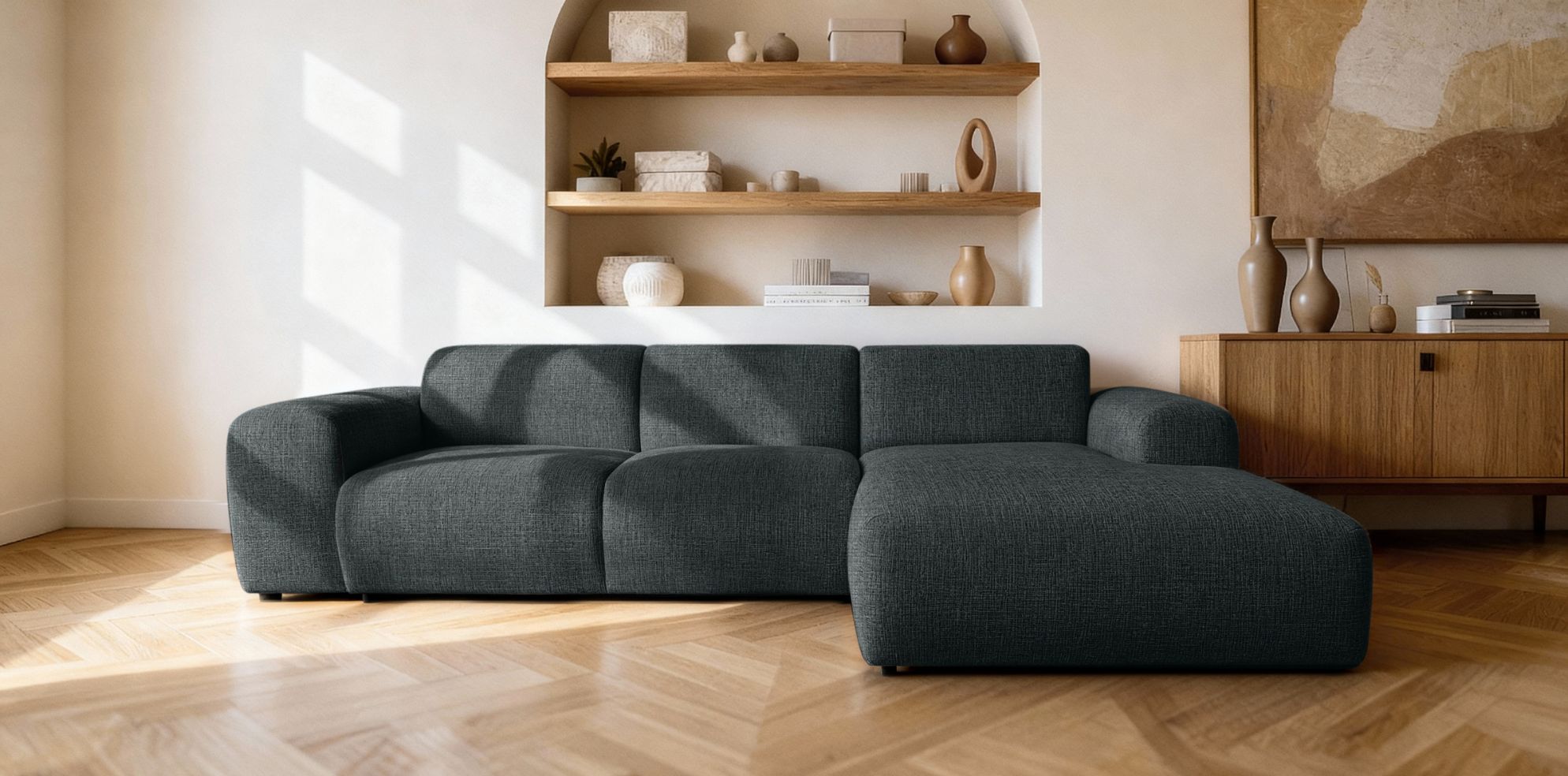 Narożnik VELGIN to połączenie nowoczesnego stylu, wygody oraz funkcjonalności – idealny wybór do dużego salonu, w którym liczy się komfort i elegancja.
