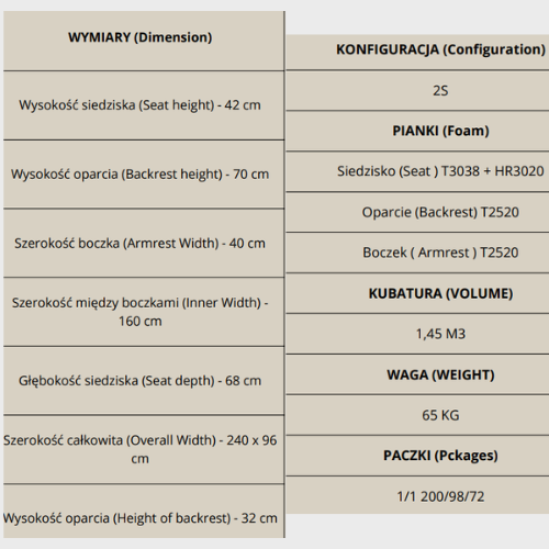 | Głębokość siedziska | 68 cm |