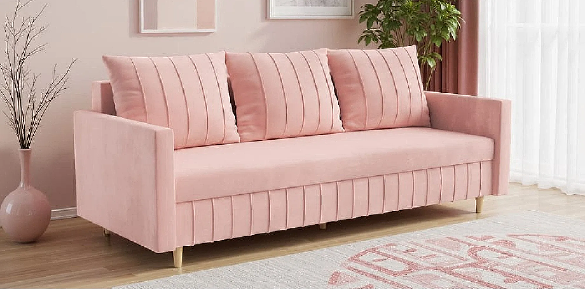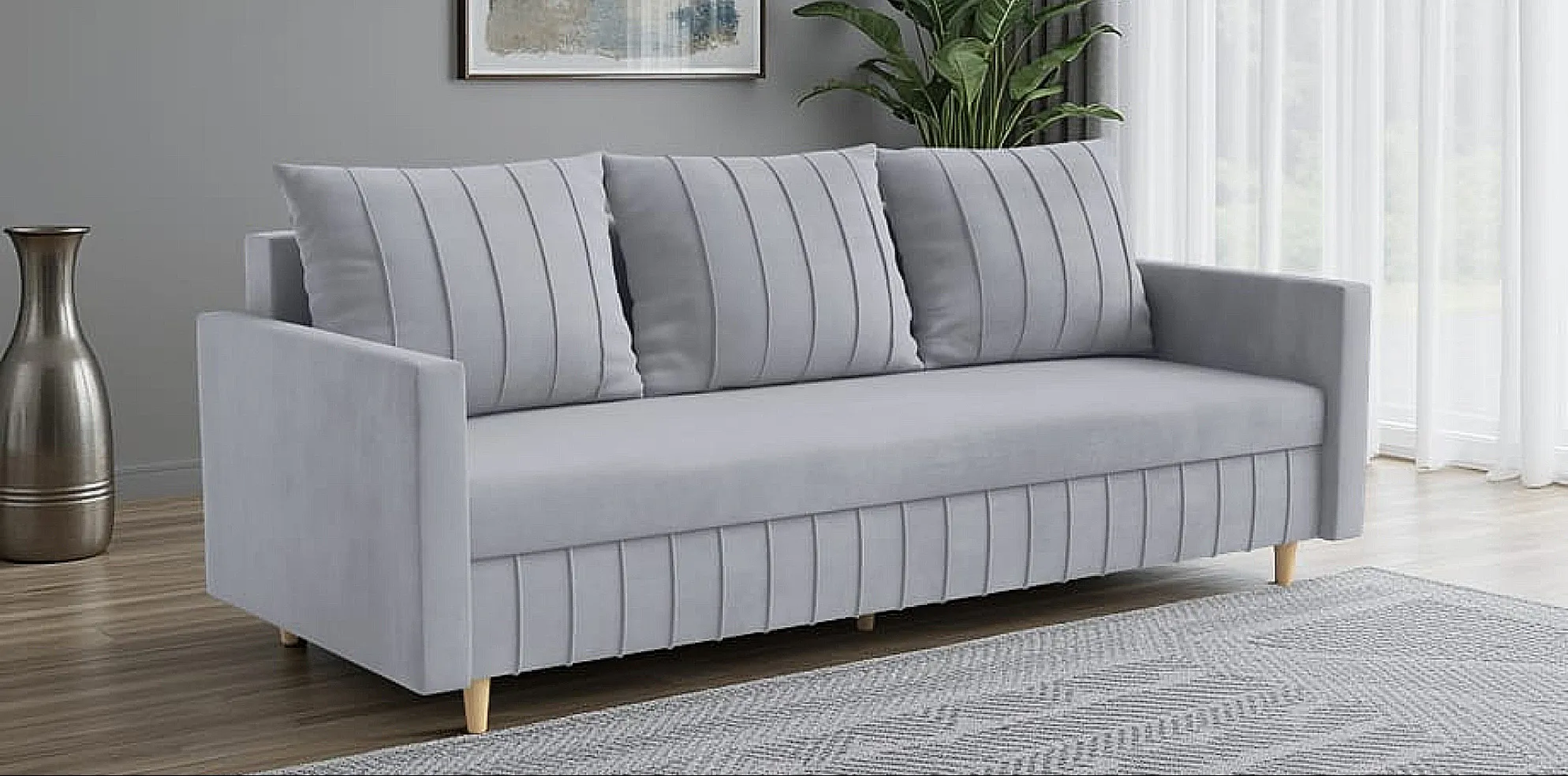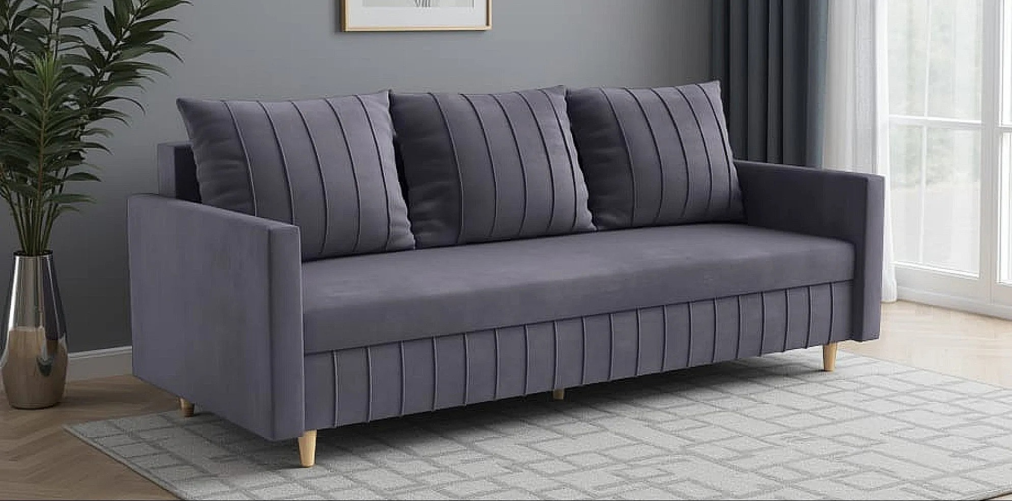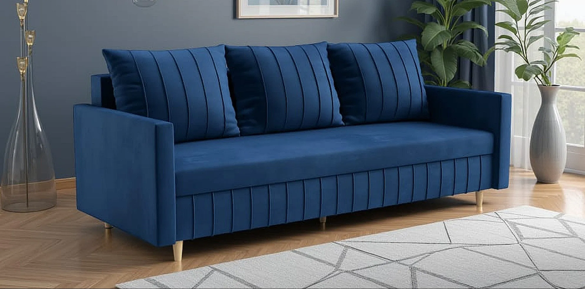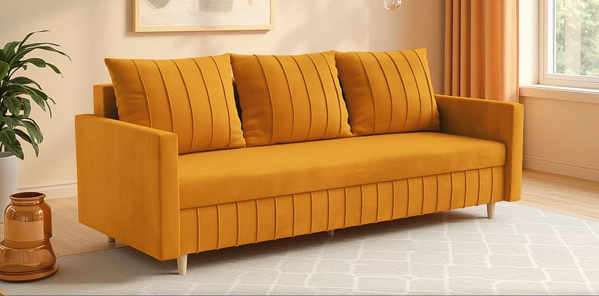 ✔️ Kanapa wolnostojąca – tył wykończony tkaniną, więc świetnie wygląda nawet na środku pokoju